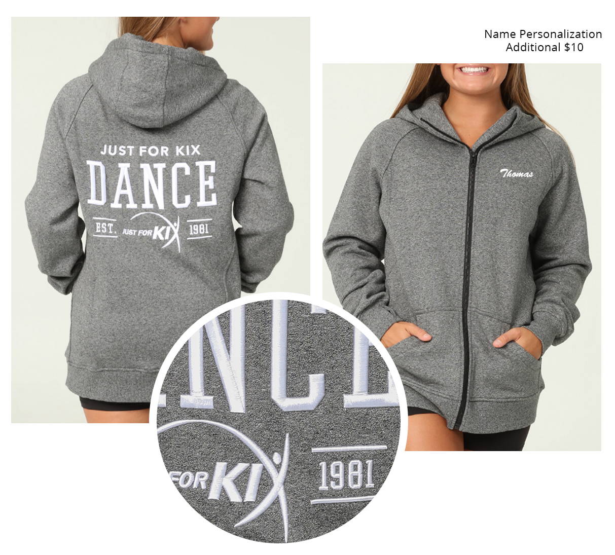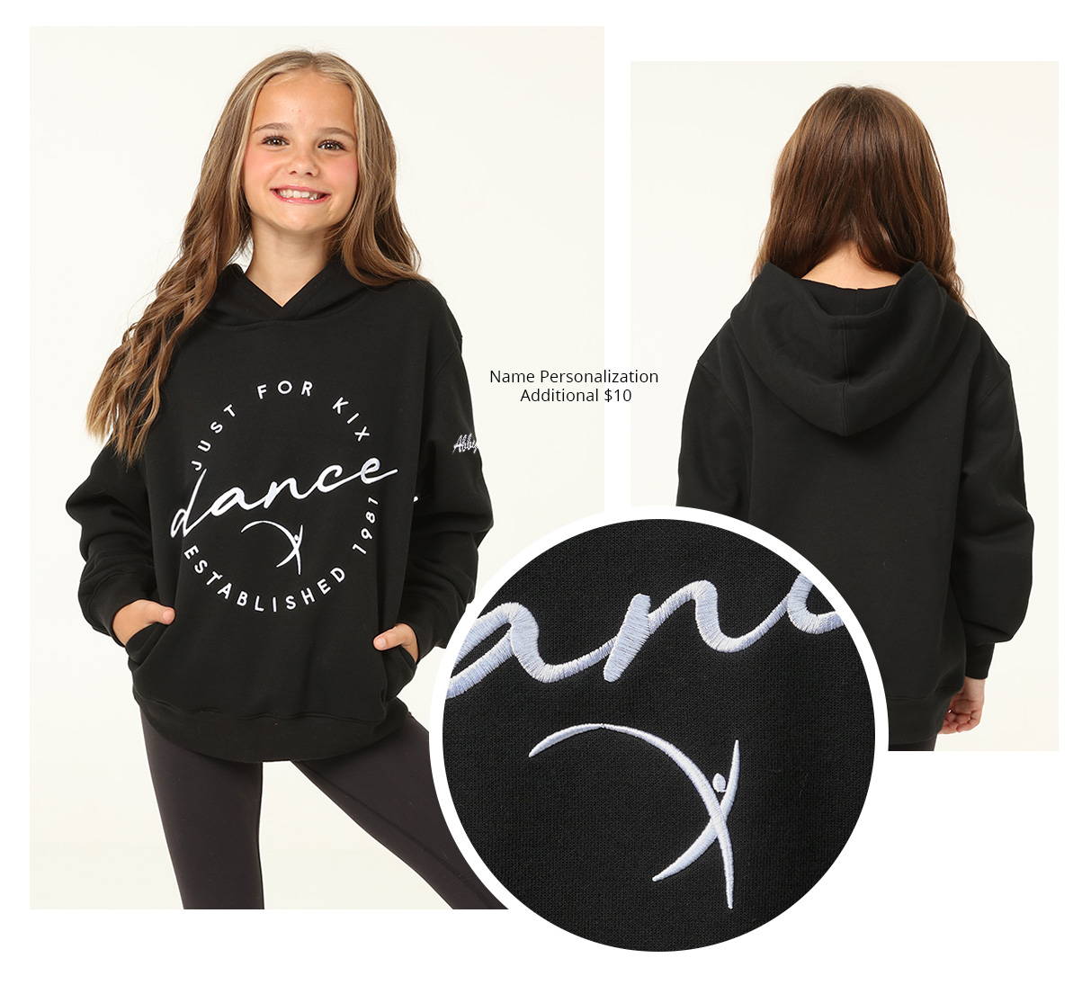 JFK3004 | Dance hoodie featuring a bold, raised embroidered Just For Kix Dance logo on Dance hoodie featuring a bold, raised embroidered Just For Kix Dance logo on the front. Invisible front kangaroo pocket.