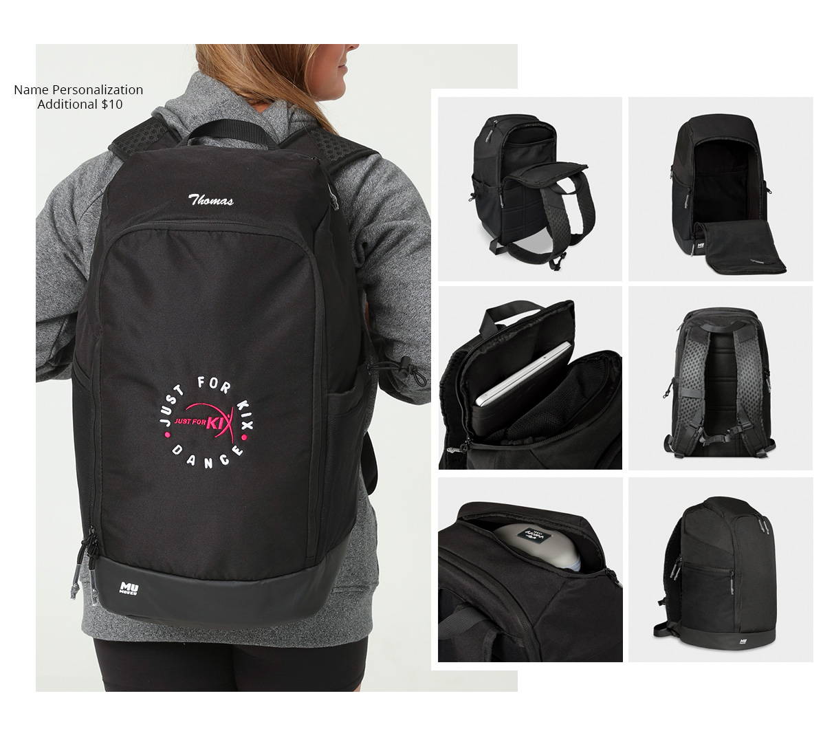 JFK3006 | Backpack features a spacious main compartment, convenient side pockets, and comfortable padded straps. Bold embroidered dance logo on the back.